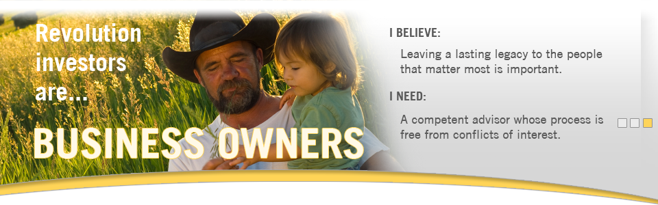 We have designed our business model to serve the financial needs and goals of our clients. Our core values at Revolution Group stand for truth, transparency, and integrity. We are committed to professionalism, devoted to excellence, and focused on earning our clients' trust. Revolution Group makes a promise to never put our personal interest before those of our clients.